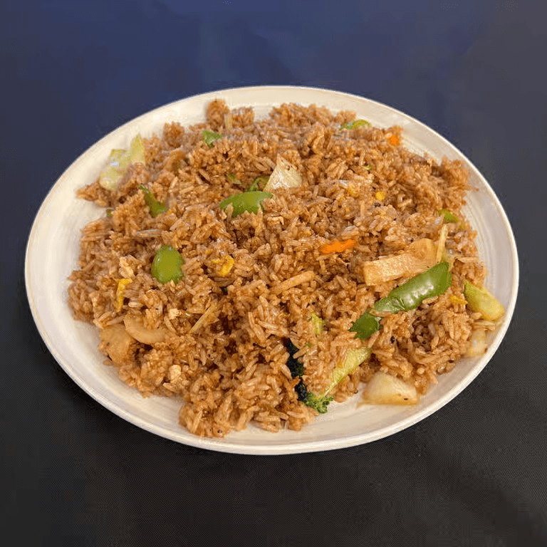 One size only. Fried rice with egg, chicken, beef, shrimp, onion, peas, carrot and broccoli