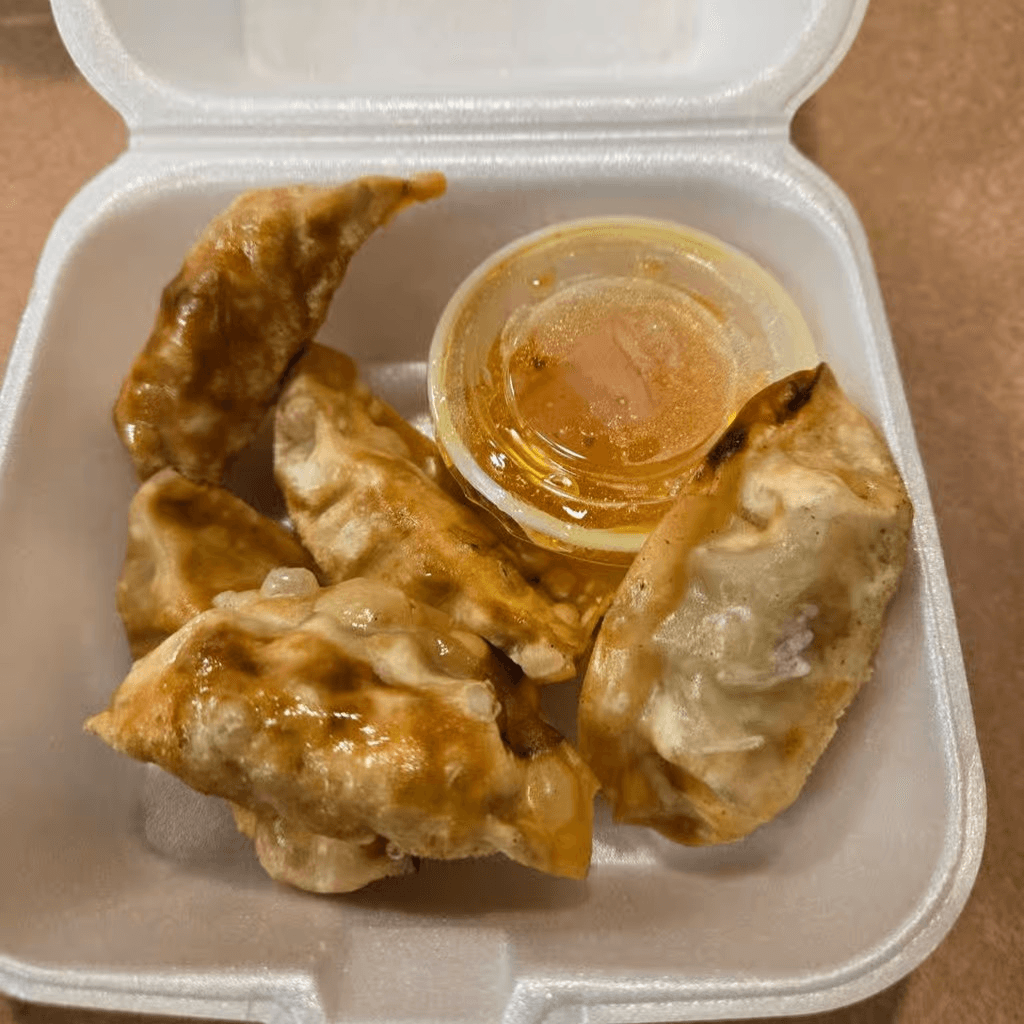 5 pieces. Crispy fried pot stickers (pork) served with plum sauce